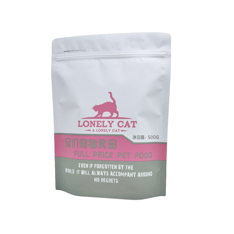 Couche en feuille d'aluminium: La couche en feuille d'aluminium offre une protection de barrière supérieure contre l'humidité, la lumière et l'oxygène, gardant les aliments pour animaux de compagnie frais et prolongeant la durée de conservation.